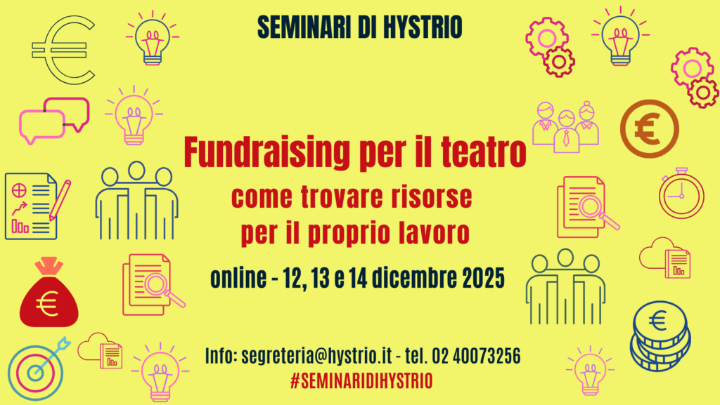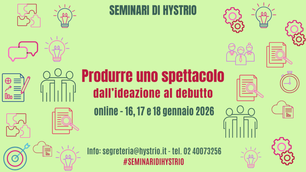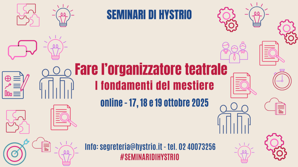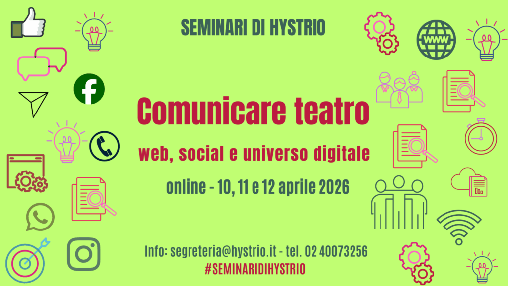 Il Seminario è rivolto a tutti gli operatori teatrali che lavorano (o desiderano lavorare) nell’ambito della comunicazione e promozione dello spettacolo e intendono approfondire la propria conoscenza dei mezzi digitali per la comunicazione. Modalità di pagamento: – bonifico sul conto corrente: Codice Iban IT66 Z076 0101 6000 0004 0692 204, intestato a: Hystrio – Associazione …